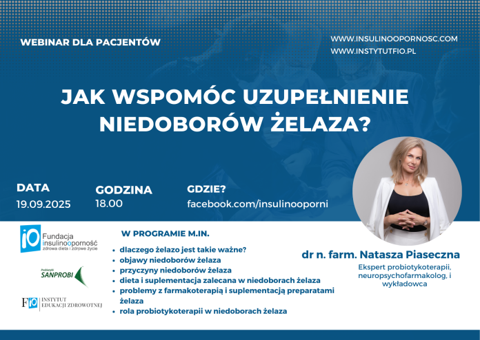 Niedobór żelaza to jeden z najczęściej występujących problemów zdrowotnych związanych z dietą i gospodarką mineralną organizmu. Żelazo pełni kluczową rolę w transporcie tlenu (wchodzi w skład hemoglobiny w krwinkach czerwonych), w procesach metabolicznych oraz w prawidłowym funkcjonowaniu układu odpornościowego i nerwowego. Już 19 września zapraszamy na bezpłatny webinar, w którym dowiecie się m.in. jak wspomóc uzupełnienie niedoborów żelaza.
