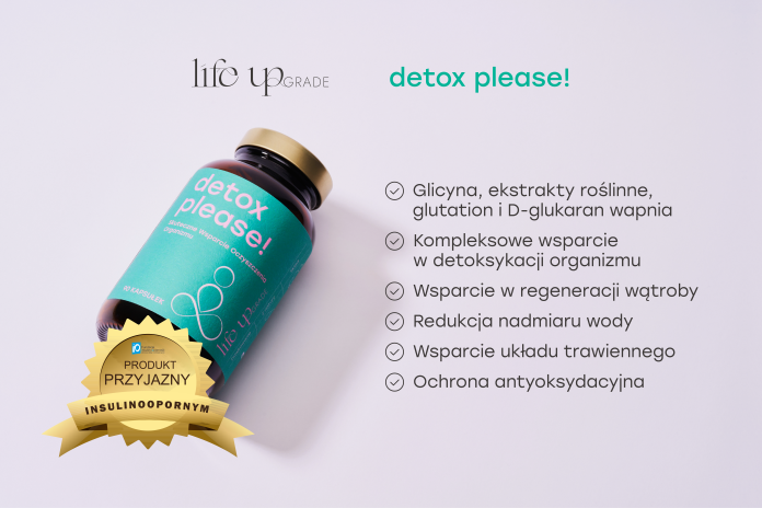 Detox Please! od Life Upgrade to przemyślana kompozycja składników, które wspierają naturalną detoksykację organizmu, wątrobę, równowagę metaboliczną i komfort trawienny — obszary, które często są powiązane u Kobiet zmagających się z insulinoopornością. Formuła oparta jest na składnikach aktywnych, bez substancji wypełniających, zbędnych dodatków technologicznych i konserwantów, Detox Please! od Life Upgrade zawiera wyłącznie składniki aktywne. Każda partia jest badana mikrobiologicznie i pod kątem metali ciężkich w niezależnym akredytowanym laboratorium J.S. Hamilton Poland — bo skuteczność działania suplementu zawsze zaczyna się przede wszystkim od bezpieczeństwa i jakościowych składników.
